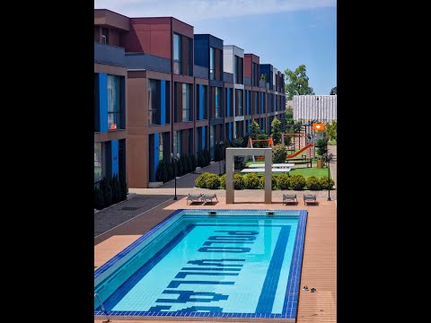 The complex has its own infrastructure with a cozy courtyard, a playground for children, a swimming pool, a barbecue area, gazebos, hammocks and a training area. The area is gated, there is security, a grocery store in the complex, a wine cellar where residents are treated on holidays. The office building has a sauna, jacuzzi and jogging tracks, but this is for a fee. There are guest bicycles and a shuttle service to the airport.